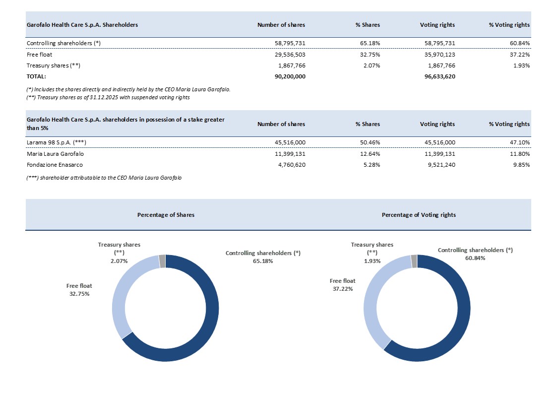 As follows the structure of the shareholding of Garofalo Health Care S.p.A. with evidence of Shareholders with voting rights exceeding the 5% threshold of total voting rights, as of January 8, 2026: